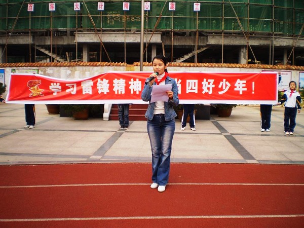 同学们,阳春三月我们总会想起一个不朽的名字——雷锋!我们耳边总会响起一句伟大的号召——“向雷锋同志学习!”。2010年3月5日,是毛泽东同志“向雷锋同志学习”题词发表47周年的纪念日。四十七年过去了,雷锋的名字仍然铭记在我们的心中。为了让雷锋精神不断发扬光大,让我们身边的活雷锋不断涌现。做为新世纪的我们倡议全体少先队员学习雷锋精神,争当四好少年: