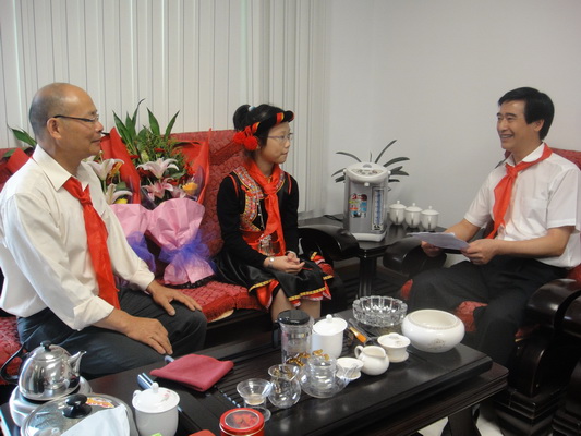 全国第六次少代会6月1日在北京召开,宁德师范附小余养森老师、福安师范附小兰泠萱同学光荣晋京参加代表大会。5月28日上午团市委、市少工委组织欢送会,市委常委、秘书长、宣传部长谢仰俊接见少代会代表,嘱咐两位代表到北京后要切实履行代表职责,展示宁德形象、畲族特色和宁德少年儿童以及少先队工作者的良好精神风貌。