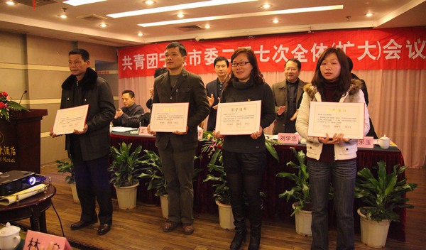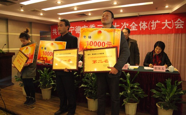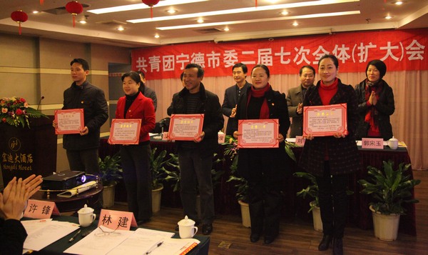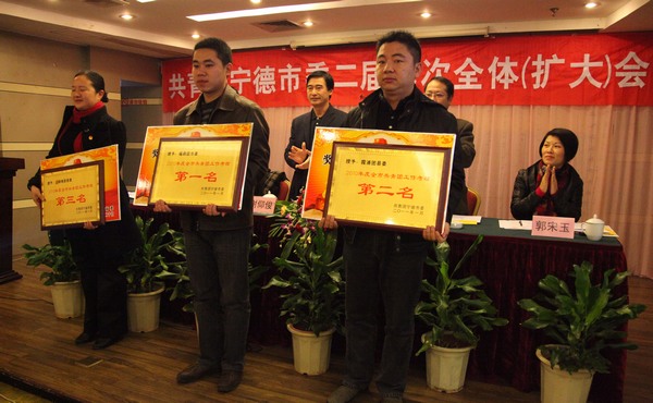 会议授予福鼎团市委、霞浦团县委、屏南团县委为2010年度全市团建前三名先进单位,并分别奖给5000元、3000元、2000元的奖金;授予福鼎市龙安开发区团委、霞浦县三沙镇团委、古田县凤都镇团委为2010年度全市乡镇团建创新竞赛前三名单位,并分别奖给1万元;授予寿宁县武曲镇团委等6个乡镇团委为“2010年度全市乡镇团建创新竞赛先进单位”。同时,大会还授予宁师附小红领巾合唱团等20个小社团“宁德市邮箱红领巾小社团”称号;授予余养森等20同志“宁德市小社团优秀指导教师”称号;授予宁德师范附属小学少先队大队等5个少先队组织宁德市少先队小社团活动“优秀组织奖”称号;并对柘荣东源中心小学《弘扬宁德少先队“勇于探索自然奥秘”的百草园精神及基地建设研究》等20项优秀成果进行表彰。