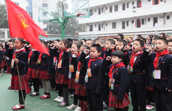 少先队跟党走 红绿领巾手牵手