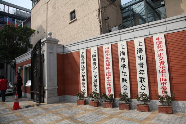 上海少先队工作委员会的牌子突出地挂在团机关大门口