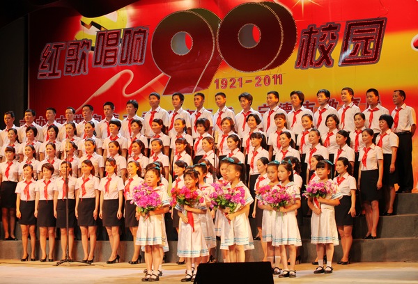 宁师附小:党团队唱红歌 敬队礼颂党恩