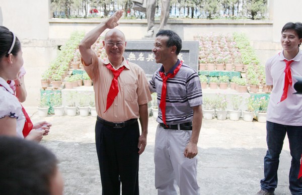 因此,主题会后,宁师附小现任总辅导员刘小春老师和她的大队委们就把余老师围住了,一条“余伯伯——红领巾永远爱您!”横幅闪亮登场,演绎了一场红领巾欢送余伯伯的即兴队会。