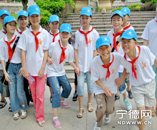 宁德网消息(见习记者 赵琼 摄)20日上午,由团市委、市少工委、市少先队工作学会主办的“红领巾心向党”2011年宁德市关爱农民工子女夏令营开营仪式在中华畲族宫举行,10名少先队小伙伴携手15名农民工子女一同参加。此次夏令营为期3天,25名来自市直、蕉城和福安学校的农民工子女将通过追寻闽东革命历史足迹,学习张高谦等少年英雄榜样,走进宁德少先队精神体验营体验少先队精神,在丰富多彩的活动中互相交流,共同进步。图为出营的孩子们在玩“快速结对子”游戏,互相认识,增进感情。